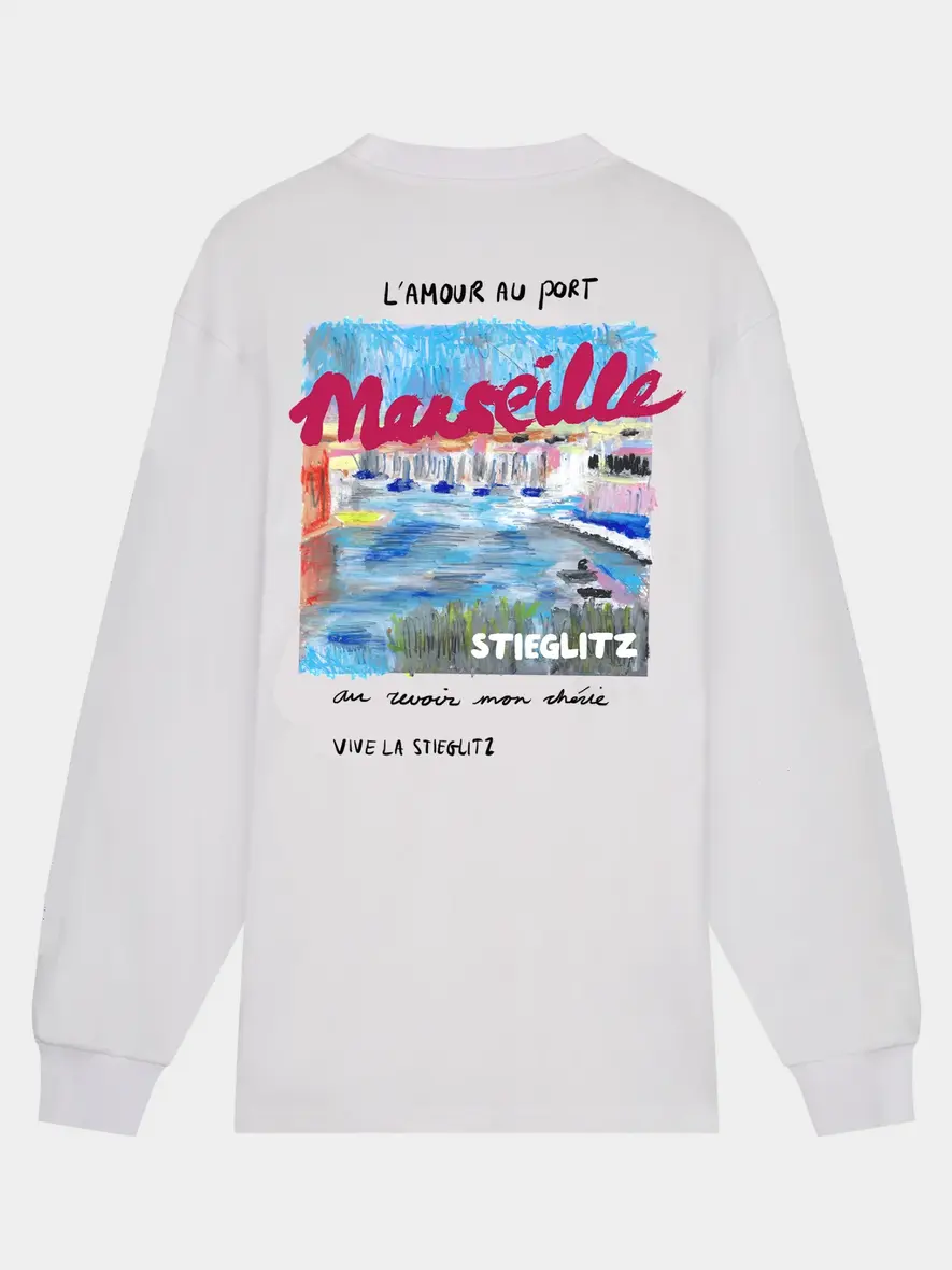 de monet skate longsleeve heeft een oversized fit met geribde boorden voor extra comfort. het geborduurde logo op de voorkant geeft een subtiele luxe touch, terwijl de grote fotoprint op de achterkant zorgt voor een opvallend statement.